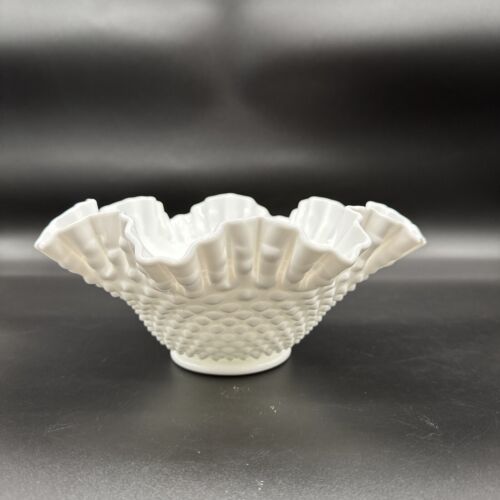 Vintage Fenton Milk Glass Hobnail Fluted Dish