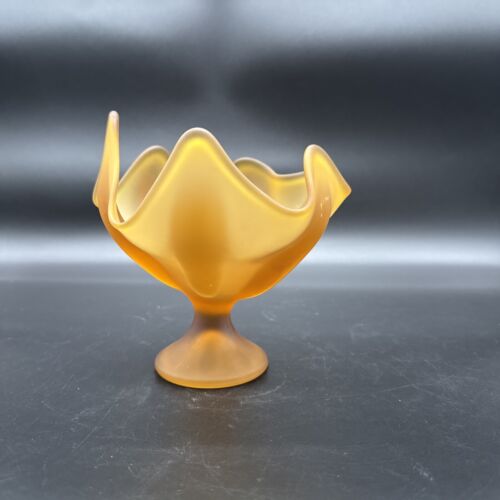 MCM Viking Art Glass Satin Amber 6 Petal Compote Dish 6.25” T