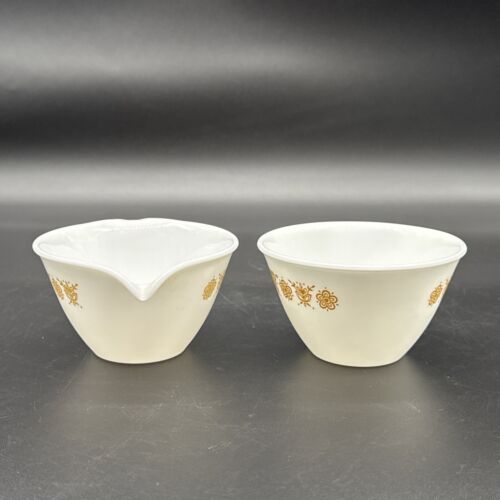 Vintage Corelle CREAMER w/ Hooked Handle and Open SUGAR BOWL - Gold Butterfly