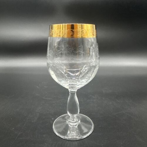 Rare Vtg Italy Needle Etched Gold Rim Crystal Wine Glasses Hand crafted Set Of 4