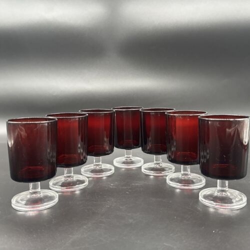 Vintage Luminarc Ruby Red Stem 4" Cordial Juice Glass Made In France Set Of 7