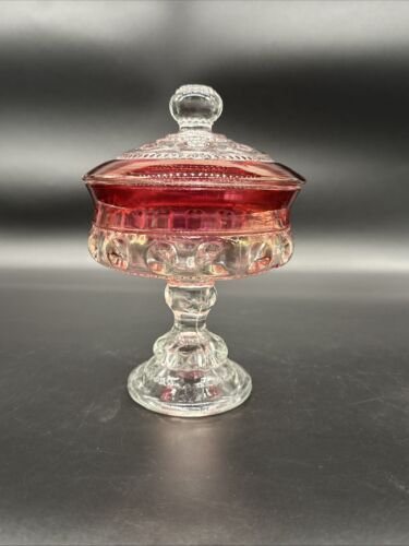 Indiana Glass Kings Crown Ruby Red Band Covered Compote Made in USA 7.25" Tall