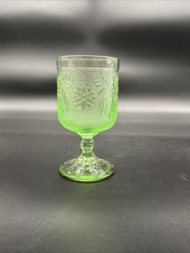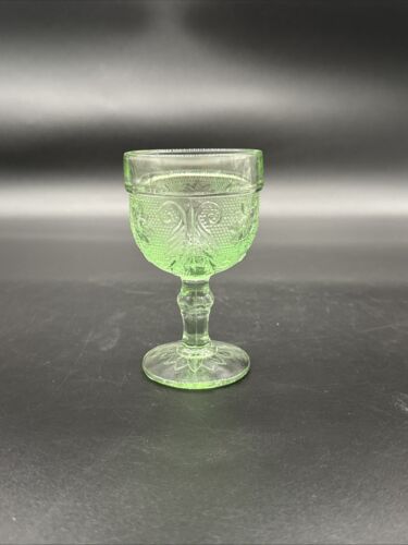 Tiara Crystal Sandwich Light Green Pattern Wine Glass 4.125" Vintage Stemware