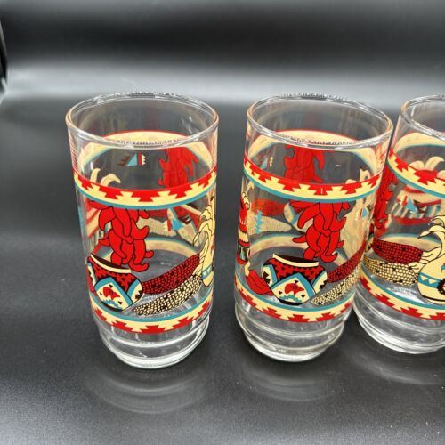 Vintage Rare Indiana Glass Southwest Pottery 16 oz. glasses Set of 4
