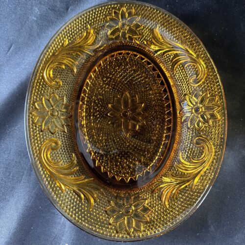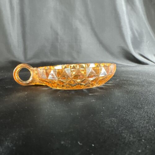 Vtg Carnival Pressed Glass Round Candy Dish Starburst Marigold Jeannette Indiana