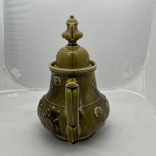 Vintage Large Olive Green Pear Teapot w/ Mini Teapot Finial 12.75" x 10.75" Exc.