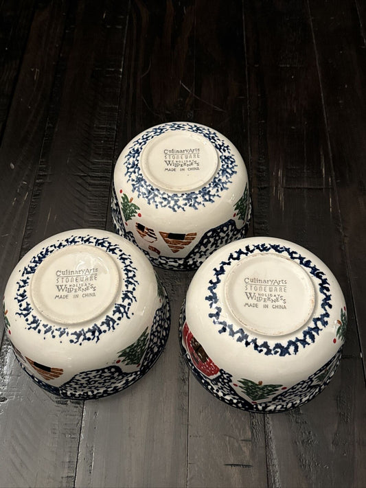 Vintage Teinshan Stoneware Wilderness Holiday Bowls
