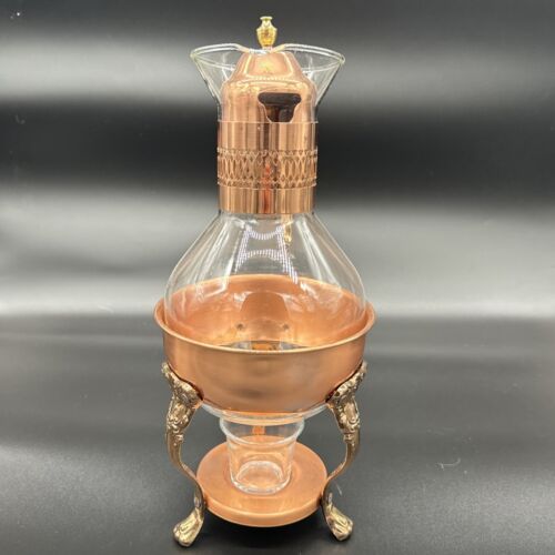 Vintage Princess House Copper Coffee Tea Pot Carafe Warming Stand 14" Tall w/lid