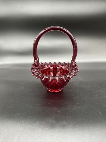 Fenton Glass Basket Ruby Red Amberina Base Hobnail Crimped Edge