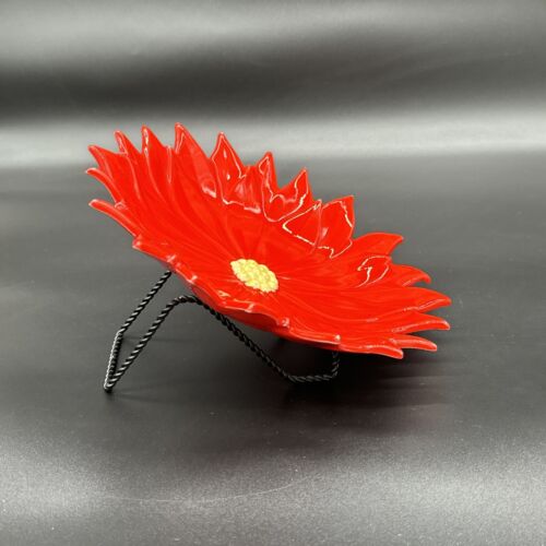 Atlantic Mold Poinsettia Bowl Flower 8" Dish Christmas Vintage 1968 Red Green