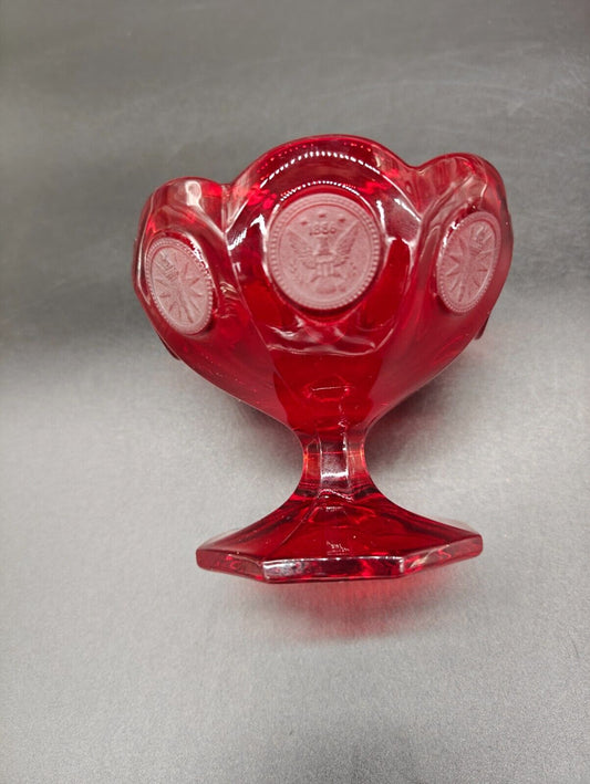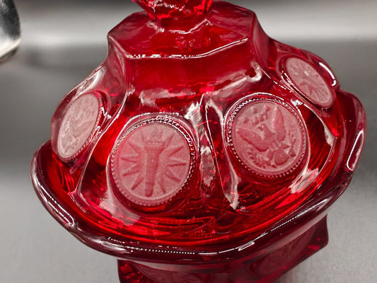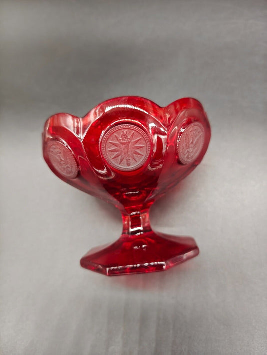 Vintage Fostoria Ruby Red Coin (Eagle/Torch) Glass Compote/Open Candy Dish