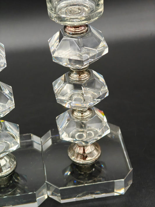Vintage Clear Glass Diamond Design Silver Accented Votive Candle holder MCM