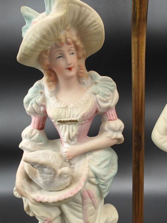 Antique French Provincial Bisque Porcelain Figurine Couple on Table Lamp
