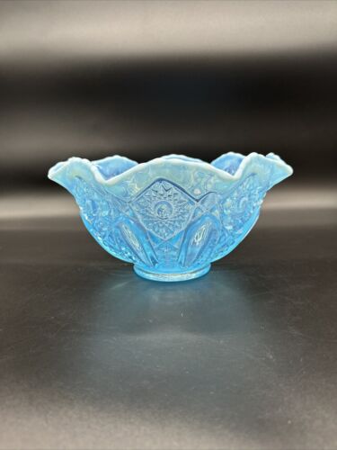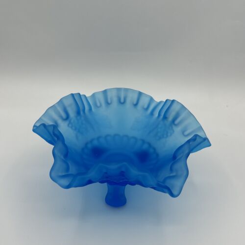 Vtg. Westmoreland Blue Mist Satin Glass Bowl Ruffled Edge Grape Vines 3 Footed