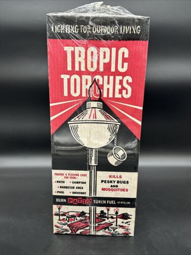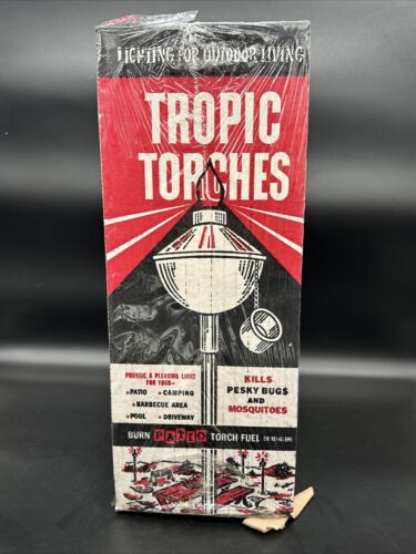 NIB VINTAGE TROPIC TORCHES HAND SPUN ALUMINUM 6' TALL NEW OLD STOCK