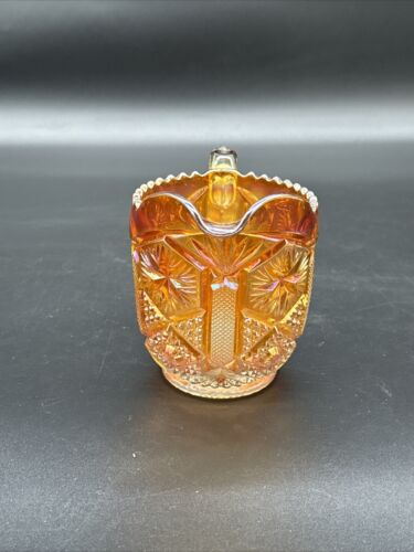 Vintage Imperial Carnival Glass Creamer Pitcher Amber Gold Vintage HobStar