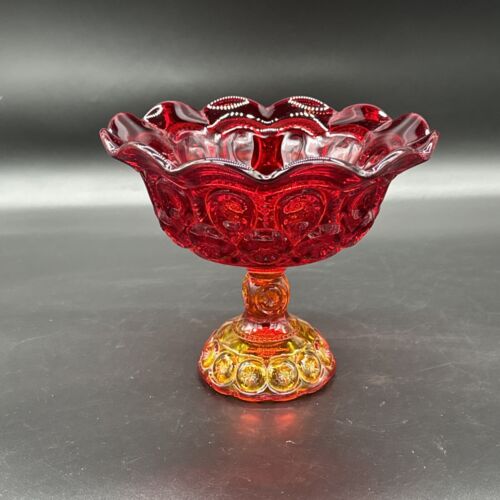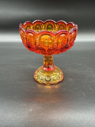 L E SMITH LARGE RED AMBERINA GLASS MOON & STARS COMPOTE 6 5/8" EXCELLENT large