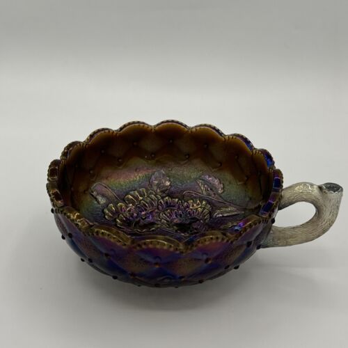 Imperial Carnival Glass Smoke Nappy Candy Dish Pansy Quilted Diamond Vintage